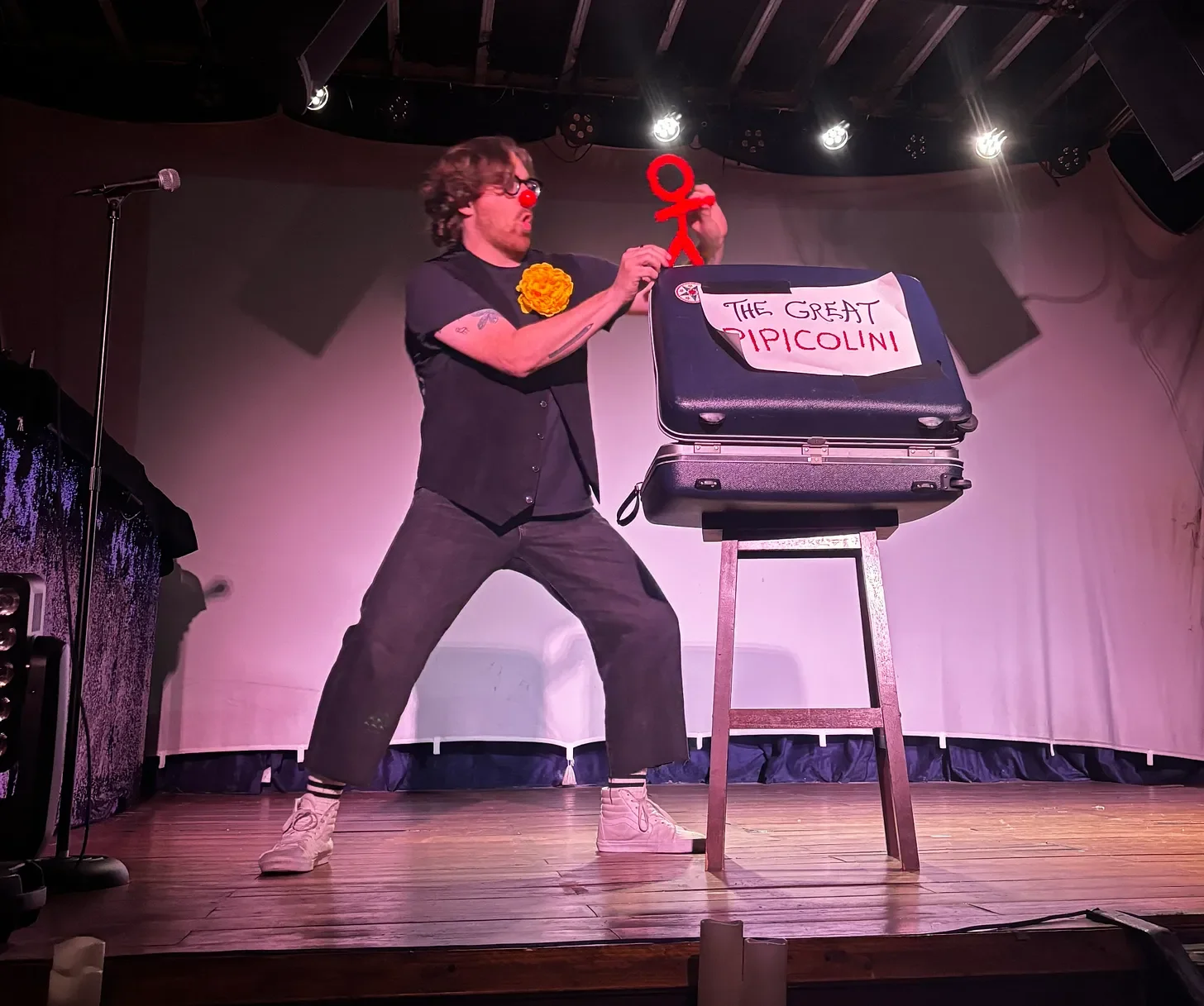 This is a photo of The Great Pipicolini, an act that asks the question, “How far can I take the tiniest, stupidest idea possible?